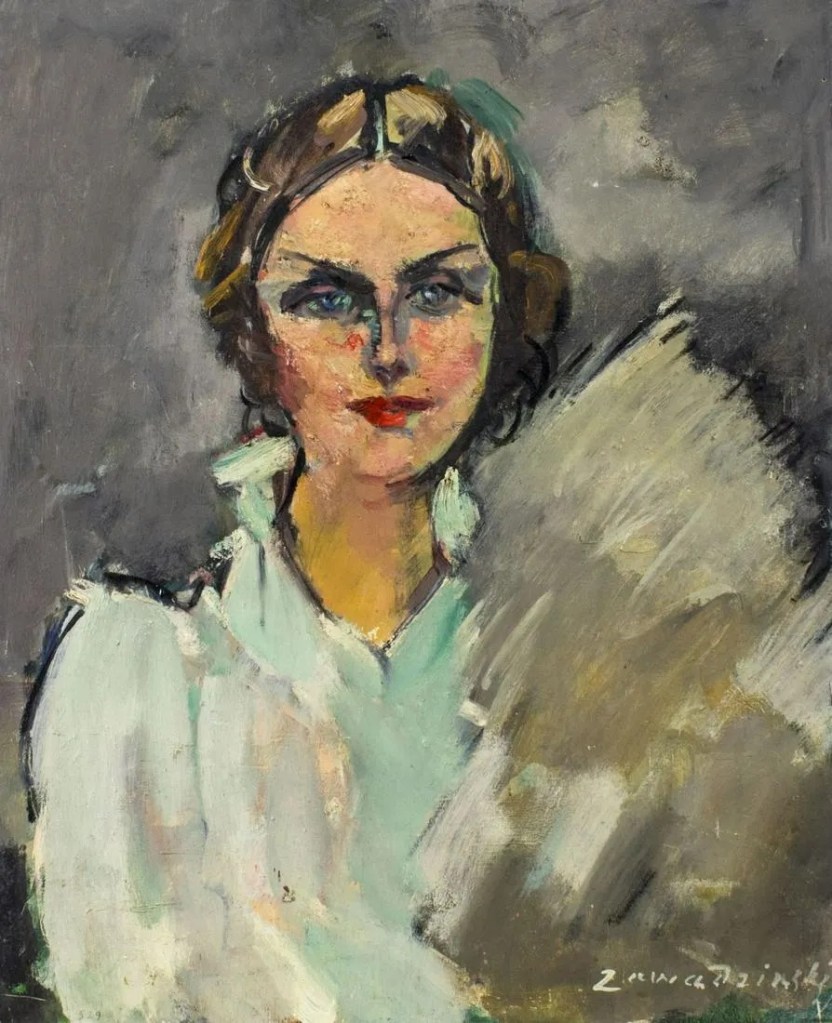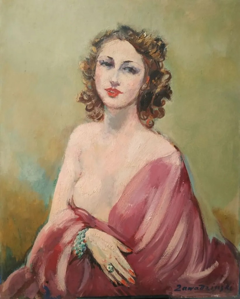 W tej serii trzech obrazów Czesława Zawadzińskiego, dwóch z odbytej aukcji w Millon a jeden z nadchodzącej aukcji, pierszeństwo dałbym portretowi kobiety. Na blogu zarejestrowałem już kilka innych jego OK prac, lecz ten portret daje wybrażenie o potencjale artysty.