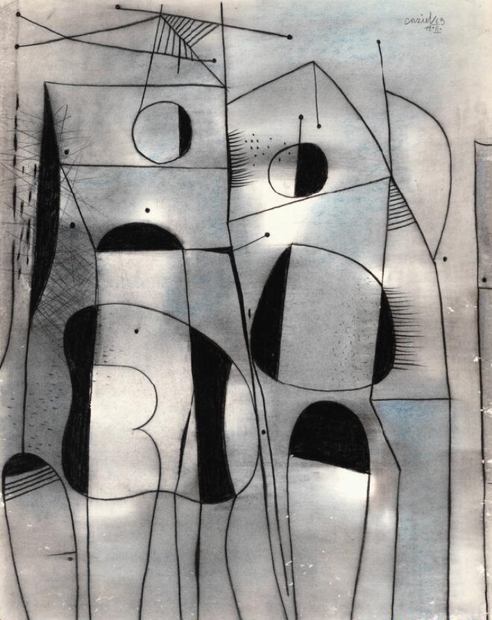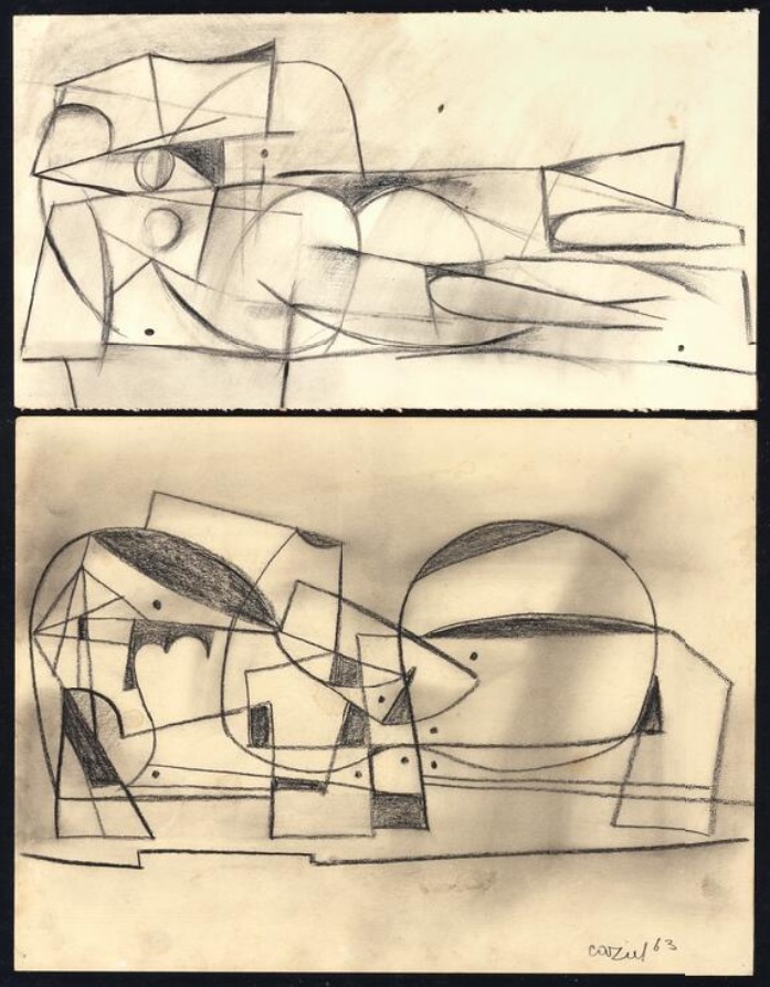 Lot 595. Caziel b. Sosnowiec, Poland 1906, d. Somerset, England 1988). Untitled. Signed Caziel 18 Dec. 1962 and Caziel 1962 XII with dedication. Charcoal on paper. Visible sizes 36×25 and 34×22 cm. (2). Provenance: Private collection, Denmark. Acquired directly from the artist by the current owner. Estimate 4,000–5,000 kr. Rasmussen. 09/29/21. Sold 5,000 kr