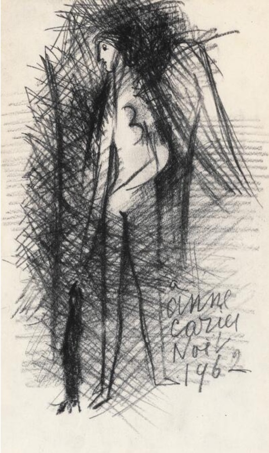 Lot 598. Caziel (b. Sosnowiec, Poland 1906, d. Somerset, England 1988). Untitled. Signed Caziel, Noël, à Anne. Charcoal on paper. Visible size 24.5×15 cm. Provenance: Private collection, Denmark. Acquired directly from the artist by the current owner. Estimate 2,000–3,000 kr. Rasmussen. 09/29/21. Sold 4,000 kr