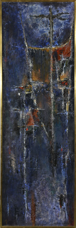 Lot 4016. Rajmund Ziemski (Rajdom 1930-2005 Warsaw). Landscape. 1961. oil on canvas. Signed and dated lower left, verso signed, numbered 5/62 and sized. Label from Desa, works of antique and modern art, Warsaw, on the stretcher. 125×45 cm. Framed. Estimate CHF 5,000 – 8,000. Schuler Auktionen. 09/17/25