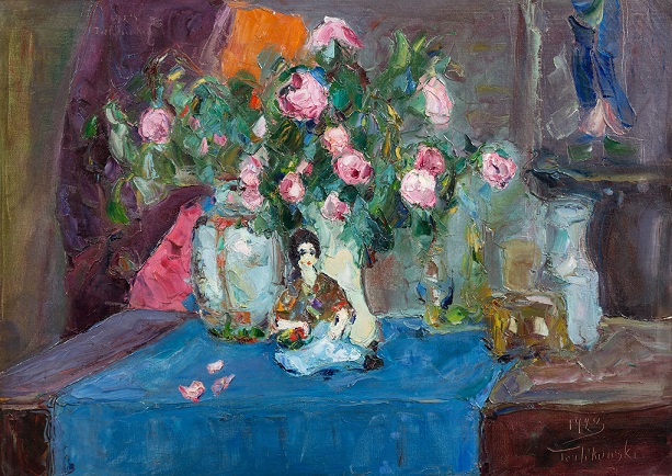 Tej pracy Telikowskiego chyba nie wprowadziłem do blogu. Była sprzedana za 2,500 euro (hammer) , tj ok 12,000 zlotych 3 października 2018 roku we francuskim SVV A. COURAU. Przyznaję, że to jedna z lepszych martwych natur Terlikowskiego. Jednak, nie wiem dlaczego została tak wysoko wyceniona przez Polswissart (lot 39, aukcja 4 lutego 2020 r.) bo 28,000 – 35,000 złotych.