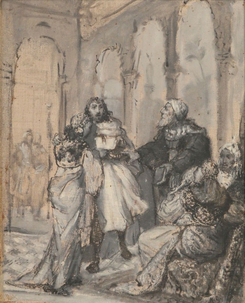 Szkic do Rechy Maurycego Gottlieba ma bogatą historię sprzedaży. Zauważyłem, że począwszy od 2007 roku była na aukcjach minimum 6 razy, w tym dwa razy w Polsce a obecnie tam jest po raz trzeci. Obraz wyraźnie został sprowadzony do Polski w celu zarobku i…kompletna klapa. w 2007 roku izraelska Matsart rzekomo sprzedała ten obraz za $80,000 (wycena $85,000 – 120,000) by w nastepnym roku sprzedać go ponownie za jedyne $32,000 (wycena $36,000 – 46,000). W cztery lata później obraz pojawił sie w belgijskim domu Louiza ale brak informacji o sprzedaży. Obraz wrócił na aukcję do Matsart w 2016 roku (brak informacji o sprzedaży) i w końcu znalazł swoje miejsce w Polsce w 2018 roku. Tam w Desie-Unicum został wyceniony na (ho, ho!) 200,000 – 300,000 PLN (ca $53,000 – 79,000) i chyba spadł skoro podana jest tam cena sprzedaży 170,000 PLN (ca $45,000) [Na marginesie, wydaje mi się, że Desa ma najbardziej szczodrą w Polsce rękę do wyceny, tj. posiada nalepszych na świecie wyceniaczy]. Wkrórce w tym samym roku zjawił się w Agrze-Art z wyceną sporo niższą od tej w Desie, tj. jedynie 150,000 – 200,000 PLN i nie został tam niesprzedany. Obecnie, tj. 30 maja 2021 obraz jest licytowany we wrocławskiej Galerii Vratislawa z ceną wyjściową 125,000 PLN (ca$33,000) czyli mamy cenę sprzedaży z 2008 roku… i chyba znowu tam spadł.