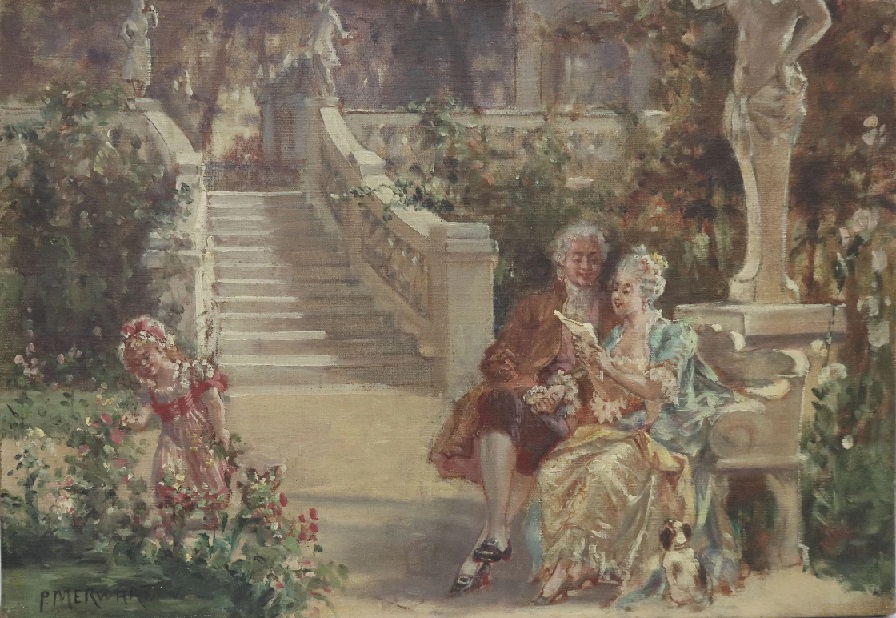 Mała praca Pawła Merwarta, scena przeniesiona przez artystę w świat ‘starego reżimu’, była na aukcji w czerwcu 2021 we Francji ze wstydliwą ceną estymacyjna 100 – 200 euro. Jednak, w Polsce Sopocki Dom Aukcyjny (aukcja 6-go października, 2021, lot #5) w tej pracy doszukał się niezwykłych wartości pozwalających rozmarzonym rodakom przenieść się w ten idealizowany świat dobrobytu sfer wyższych i wycenił ją na whooping 14,000 – 18,000 złotych (3,000 – 3,900 euro). Nie wiem za ile sprzedano tę pracę we Francji. Gratulacje dla SDA bo tam oraz w Desie widzę nowoczesną szkołę wyceny, najlepszą nie tylko w Europie ale i na świecie. Przyznam, że widziałem o niebo lepsze oleje Pawła Merwarta. Podarunek dla polskiego Urzędu Podatkowego, bo praca ta po czterech miesiącach od sprzedaży we Francji na aukcji w Polsce. https://polishartcorner.com/2020/06/13/pawel-merwart-1855-1902-3/
