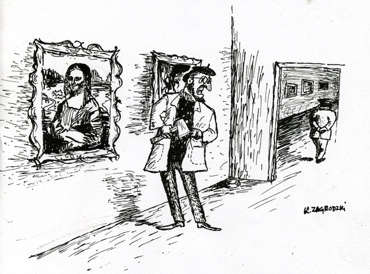 A dla rozładowania atmosfery wyciągam z archiwum mój rysunek z pradawnych lat a do którego mam akurat pasujący podpis : “Aktywista któremu ktoś powiedział że Mona Lisa jest fałszywa”