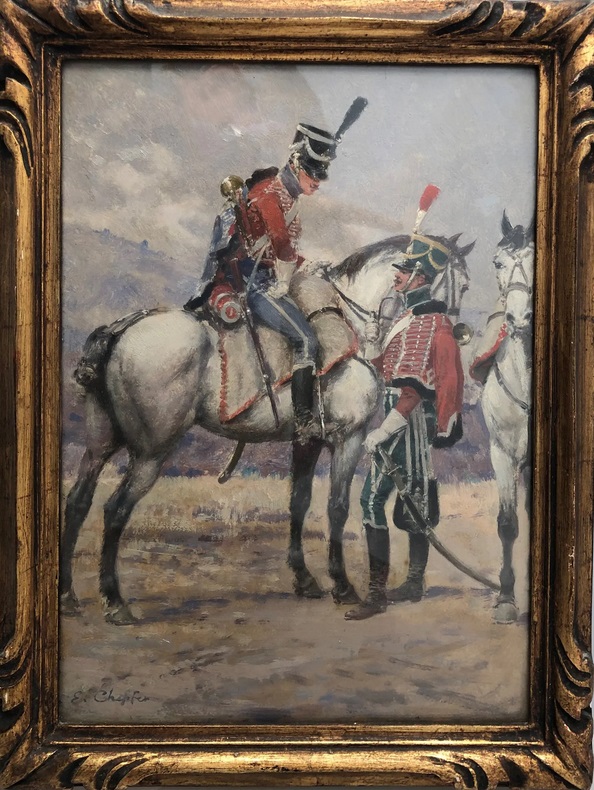 Lot 26. CHEPFER Eugène (1876-1944). Lancier polonaise, Hussards. Deux huiles sur panneau ou carton formant pendant. Signées en bas à gauche et droite, 32 x 23 cm. Estimation: 300 – 500 €. Maître Gael BIARD. 11/21/19