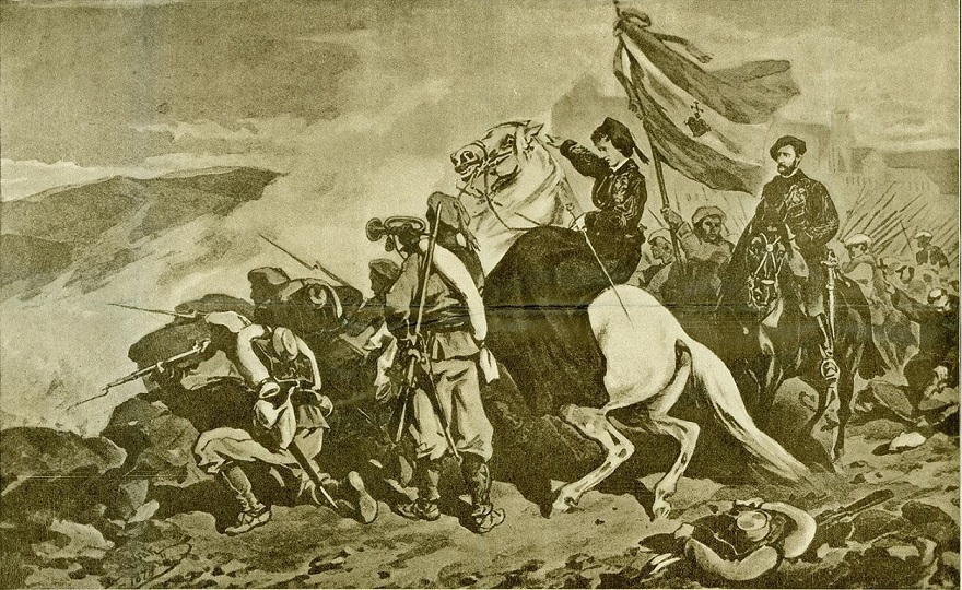 Spora ciekawostka. Obligacja banku hiszpańskiego z 1933 roku z wizerunkiem akwareli wykonanej przez Juliusza Kossaka, datowanej (1878 r) o wartości 50 pesetos. Praca Kossaka przedstawia fragment jednej z bitew z tzw. (po angielsku) Carlist War, jednej z trzech wojen o tron Hiszpanii w XIX wieku. Historia tych trzech wojen jest zupełnie mi nieznana. Druk obligacji jest sporego formatu (59 x 51 cm) i zapewnie praca Kossaka jest nieźle tam odwzorowana. Uważam, że może być to znakomita forma dekoracji ściennej w oprawie zamiast marnego plakatu a w dodatku jakiż to element do dyskusji, gdy zbierze się towarzystwo.