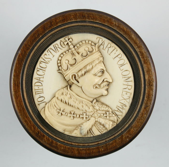 PS. Dzięki uprzejmości p. Marka Klimka z https://miniatury.wordpress.com/ mogę przedstawić dwa dodatkowe miniaturowe portrety polskich królów wykonane w tej samej co powyżej technice kości słoniowej: Jana Sobieskiego oraz Augusta Mocnego: