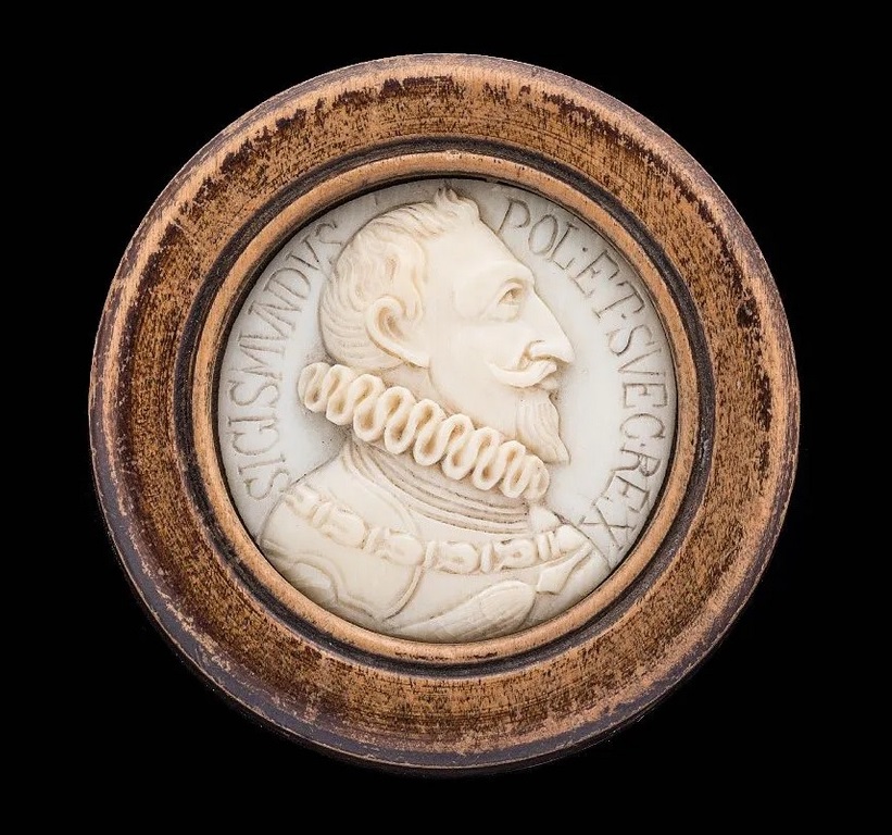 Portret Zygmunta III Augusta wykonany w kości słoniowej. Kto był autorem – nie wiadomo. Chclałoby się zobaczyć cała serię, od Mieszka do SAP.