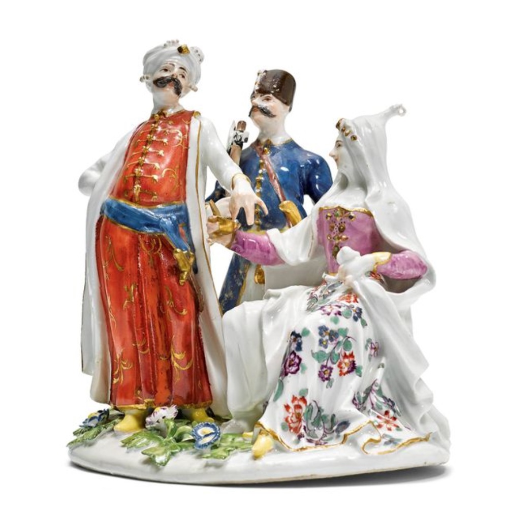 Lot 1599 – A192. GROUP OF FIGURES “THE POLISH ENGAGEMENT”. Meissen, ca. 1743. The model probably by Johann Joachim Kändler. No mark. H 15 cm. Restorations. Estimate CHF 7 000 / 9 000 (€ 6 140 / 7 890). Koller. 03/24/20