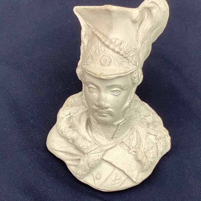 Cybuch do fajki wykonany z białej gliny, przedstawiający marszałka armii francuskiej, księcia Józefa Poniatowskiego.