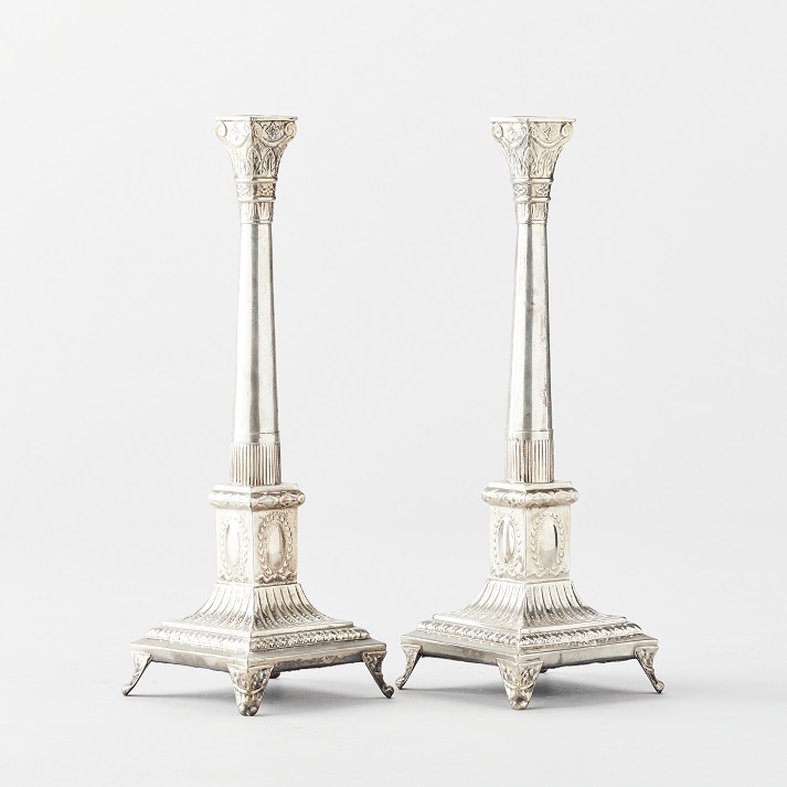 Lot 125. Jan POGORZELSKI (Russian and Polish Silver). Paire de flambeaux en argent massif au poinçon russe de 84 zolotnik-poinçon de l’orfèvre polonais POGORZELSKI-Poinçon d’essai de 1874 par Joseph Sosnkowski-poid 340g. Estimate 800 – 1,000 euro. Stanley’s Auction. 10/12/19