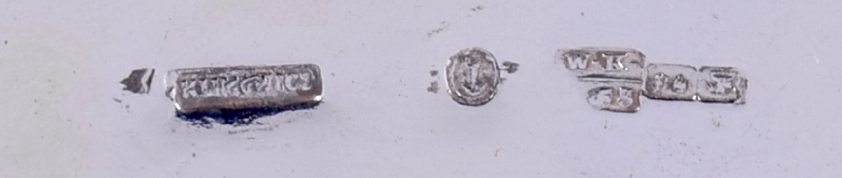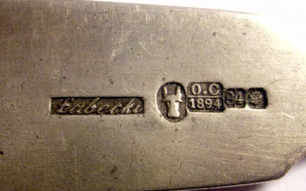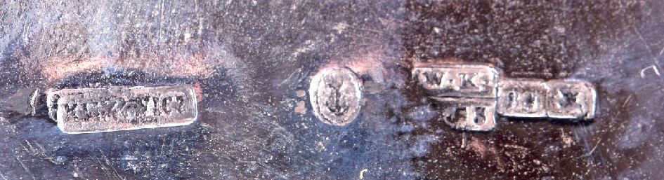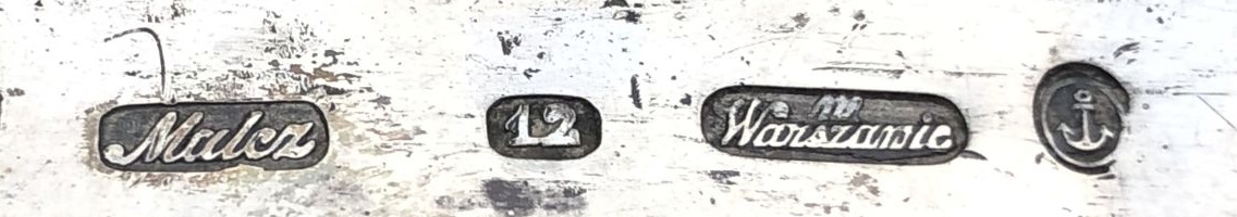 tu mam problem. Gustaw Radke nie wykonywał przedmiotów korpusowych. Robili je dla niego m.in. Kazimierz Klimowicz i Wojciech Birkowski. Radke nabijał na ich cechach swoją puncę. Jest sporo przykładów sreber W.Birkowskiego sprzedawanych przez Gustawa Radke. Birkowski sygnował swoje wyroby W.B w rombie. Jego znakiem firmowym była gwiazda w kole. Tu mamy taki właśnie przykład. Problem w tym, że Wojciech Birkowski używał gwiazdy sześcioramiennej a tu jest widoczna pięcioramienna. To rodzi podejrzenia fałszywki. Niedobita punca Radke na jakiejś sygnaturze (romb i W.B ?) . Data probierza O.C ( Józef Sosnkowski ) wskazuje na rok 1881. W tym roku zmarł Gustaw Radke a firmę dalej prowadził Antoni Żelisławski przyjęty na wspólnika w 1880r. Powstaje pytanie czyja punca jest przebita? Gwiazdę pięcioramienną jako znak warsztatowy stosował August Wolkiewicz, ale on zakończył działalność ok.1848r. Taką pięcioramienną gwiazdę stosował także Aleksander Marcińczyk . Sygnował A.Marcińczyk w prostokącie a zakończył działalność przed 1899r. To prawdopodobnie na jego sygnaturze nabito RADKE. Ale czy on robił takie cukiernice? W swojej bazie mam tylko jego łyżeczki.