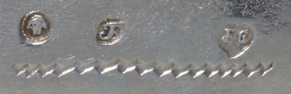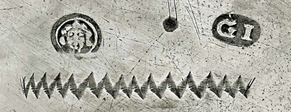 Punca „JG”, którą posługiwał sięHirschprung Hirsch (Wytwornia naczyń srebrnych H. Hirschprung Krakow), Krakow, ul. Dietlowska 75; inicjały J.G. (znak imienny Jozefa Grossa). Data złożenia deklaracji19 lutego 1931, kandelabry, lichtarze,cukiernice, kosze,kubki, tace,żardynierki itp. Wg. publikacji Michała Myślińskiego „Złotnicy, jubilerzy, mosiężnicy i rzemieślnicy pokrewnych profesji w dokumentacji Urzędu Probierczego w Krakowie (1919–1944)”. Dziekuję p. A. W za odszyfrowanie informacji z tych punc.