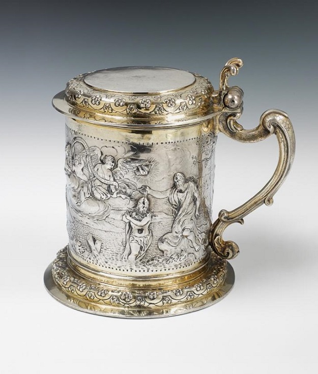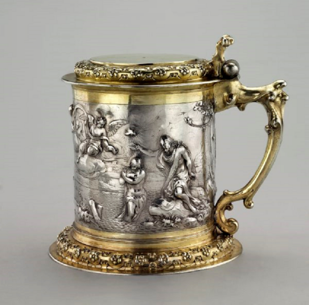 Nieduży, barokowy kufel z pokrywą wykonany we Wrocłąwiu przez Hansa Volgnadta w I połowie XVII wieku. Wyrób z ceną rezerwową 15,500 euro został sprzedany. Niezwykła robota złotnika.