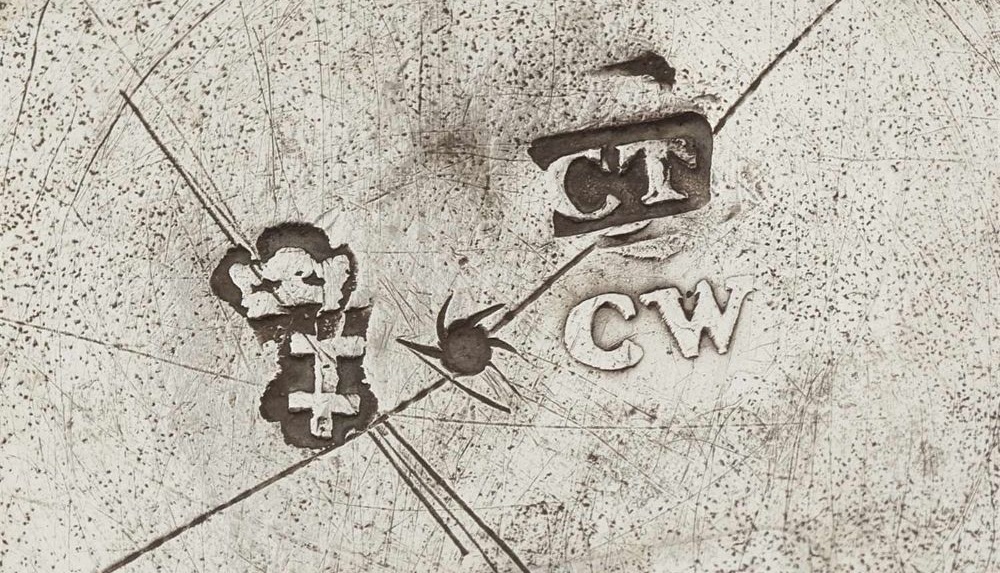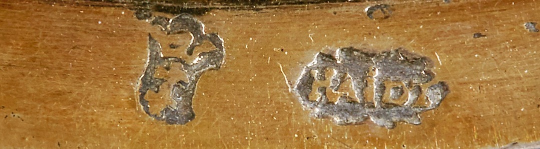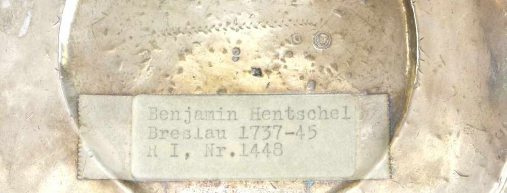 Marked on the top of the base rim I R in small shield possibly for Johann Rode II and city mark, stamped with large number 479, the latter possibly Russian