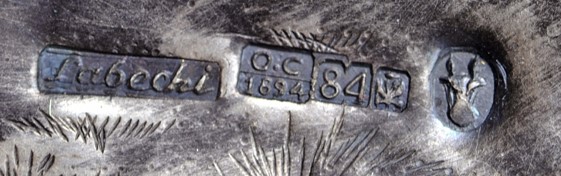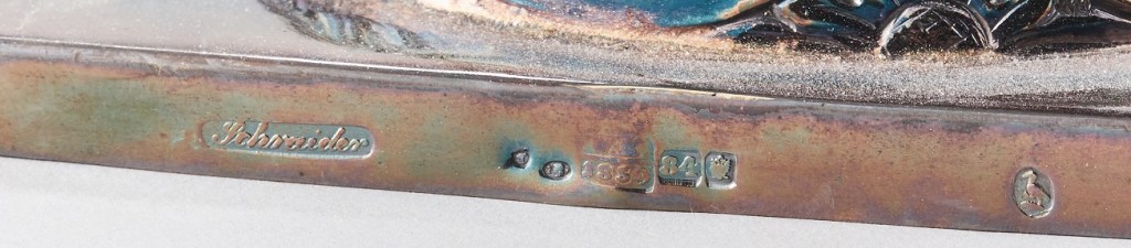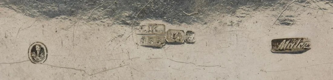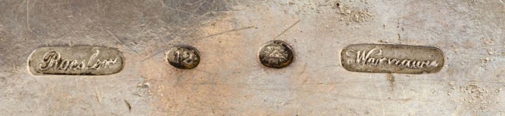 Mamy zatem imienną puncę złotnika “OSTROCHULSKI” obramowaną prostokątem, po prawej stronie gmerek tego złotnika czyli głowa konia oraz punce probierza czyli O.C. (Józef Sosnkowski), poniżej data (1884), próba srebra (“84” czyli 84/96 lub inaczej 87.5%) a obok niej punca rosyjskiego orła dwugłowego. Cukiernica ma zatem pełne punce i jej wiarygodność wykonania nie budzi żadnych zastrzeżeń (o falsyfikatach polskich sreber pisałem niedawno lecz nie spotkałem się z żadnym odzewem czy nawet zainteresowaniem policji krakowskiej czy jakiejkolwiek innej: https://polishartcorner.com/2024/02/18/falsyfikaty-sreber-cypriana-labeckiego-na-rynku-holenderskim/; https://polishartcorner.com/2024/06/12/raz-jeszcze-o-falszerstwach-polskich-sreber/). W sumie, cukiernica z rynku szwedzkiego jest bardzo rzadka jako wyrób wykonany przez Konstantego Ostrochulskiego, estetycznie atrakcyjna, oraz może być zaliczona do obiektów muzealnych.