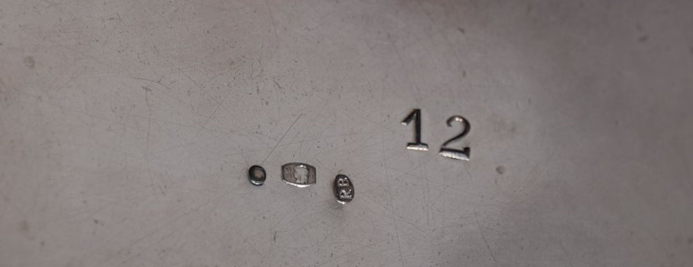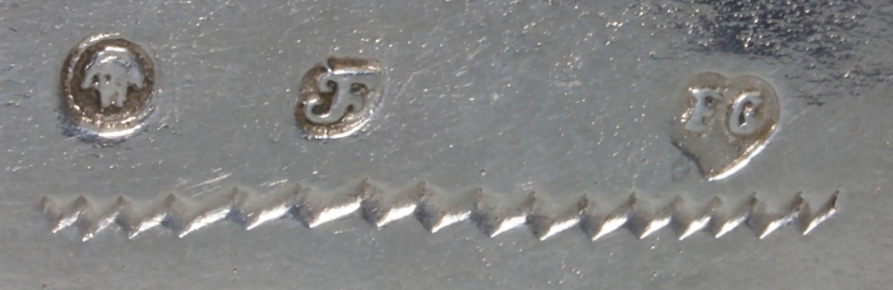 Zostało też podane zdjęcie punc (hallmarks) na spodzie cukiernicy: