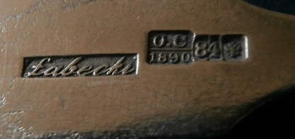 w załączniku przesyłam kilka punc pochodzących z różnych wyrobów. Proszę zwrócić uwagę, że daty pod inicjałami probierza na tych falsach są wcześniejsze niż data rozpoczęcia działalności przez Łabęckiego. Dodatkowo przesyłam Panu linki do aktualnych aukcji na Allegro z tymi falsami i nie tylko. Podrabiany jest także Sazikow i inni. Wszystkie te obiekty wystawia jeden użytkownik. Nigdzie w opisie aukcji nie podaje złotnika ( nie można mu zarzucić, że wprowadza w błąd), który daną rzecz wykonał tylko informuje o pięknym, starym wyrobie oczyszczonym z patyny wykonanym w Rosji carskiej. Oprócz cukiernic podrabiane są jady, balsaminki, jaja etc. Generalnie srebra tzw żydowskie – jest na nie popyt.