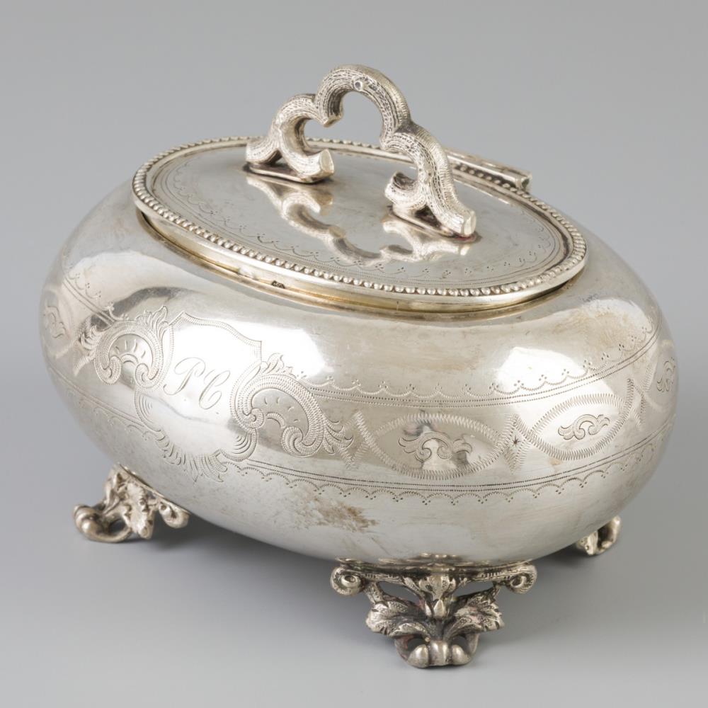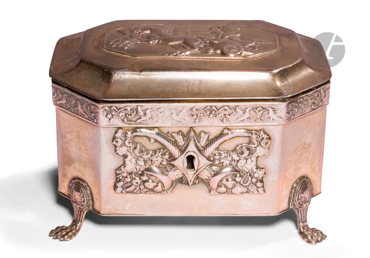 An Austro-Hungarian Biedermeier sugar box by an unidentified master of Lwów from a North German private collection. City and master´s mark. Österreich-Ungarn. Lemberg. Um 1815. Reserve 850 euro. Kunstauktionshaus Schloss Ahlden. 09/07/19. Not sold