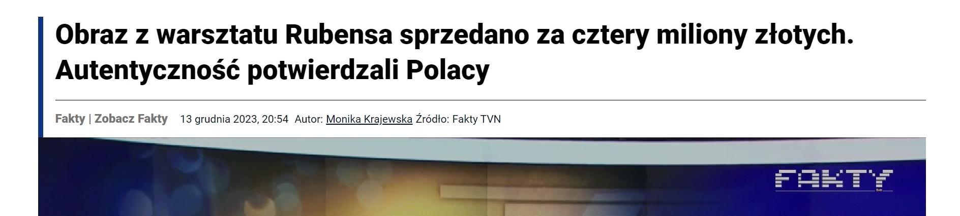 Firma Polswiss Art podała dość lakoniczną informację o proweniencji tego obrazu Rubensa: