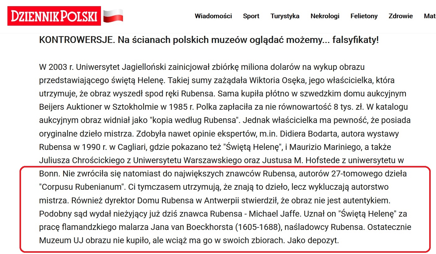 Na podobny temat ‘Rubensa’ pisał już w 2011 roku Dziennik Polski: https://dziennikpolski24.pl/watpliwe-dziela-mistrzow/ar/3022742 . Screen-shot wybranego fragmentu tego artykułu: